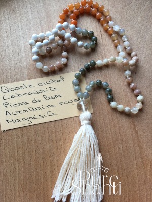 * Note : du fait de leur caractère naturel, ces pierres semi-précieuses peuvent présenter de légères variantes, irrégularités ou aspérités qui font aussi le charme et l’originalité de votre mālā…