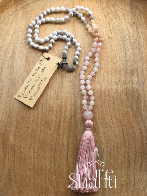 Ces 108 perles individuelles sont parfois (comme je le fais) séparées par des noeuds symbolisant l’espace de silence qui existe entre les pensées… Les noeuds facilitent également la manipulation de votre mālā puisqu’il est aussi et surtout un véritable outil et compagnon de méditation.