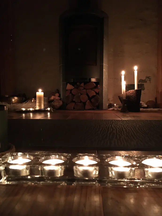 Entièrement rénové par nos soins dans des matériaux naturels et chauffé au bois pendant les cours, notre studio est exclusivement réservé à la pratique du yoga, ceci, afin de préserver sa paisible atmosphère et de respecter ce que l’on m’a demandé en Inde, à savoir :